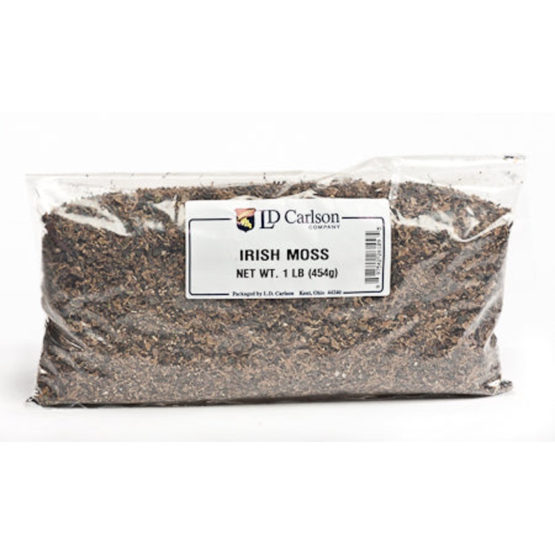 Irish moss is a species of red algae that grows along the rocky parts of the Atlantic coast of Europe and North America. It is a major source of carrageenan, used as a thickener and stabilizer in processed foods like ice cream and processed meats. It is also used in homebrewing as a clarifier. It acts as a coagulant to pull proteins and small particles out of solution to clarify the beer. Usage: Add 1 teaspoon to the wort at the final 15 minutes of the boil. It works best when rehydrated.